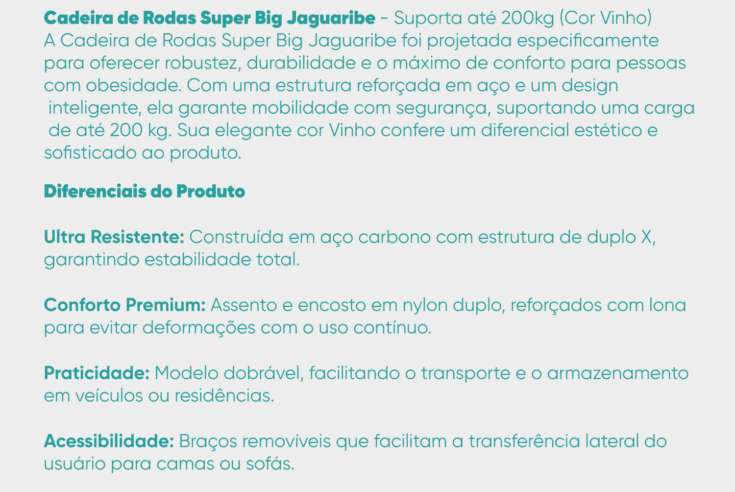 Especificações da Cadeira de Rodas Super Big Dobrável 200KG: