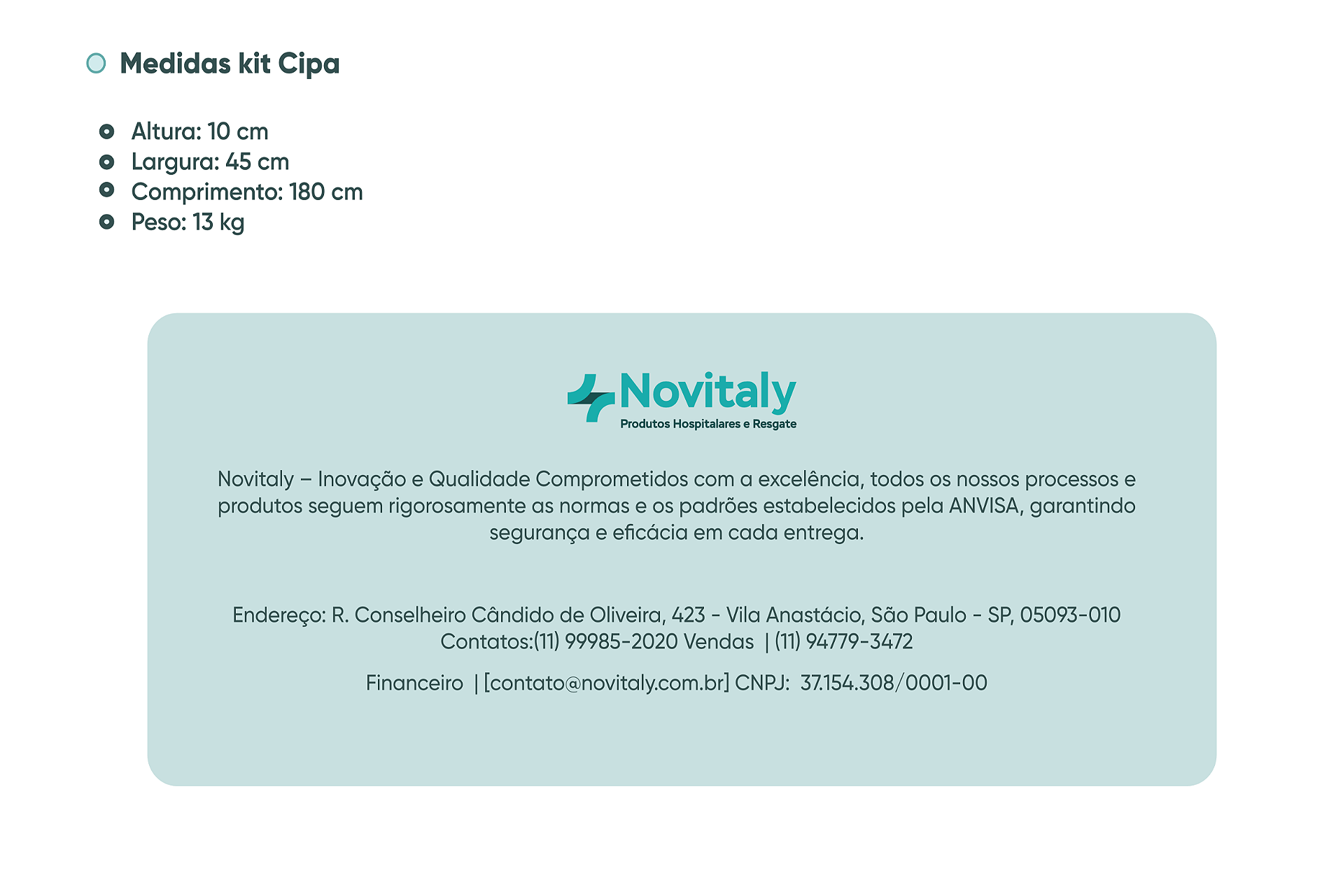 Com foco em durabilidade e praticidade, o Kit Industrial foi desenvolvido para suprir todas as necessidades durante procedimentos de emergência. A Novitaly garante a entrega do produto dentro do prazo combinado, assegurando confiabilidade e atendimento personalizado aos clientes.