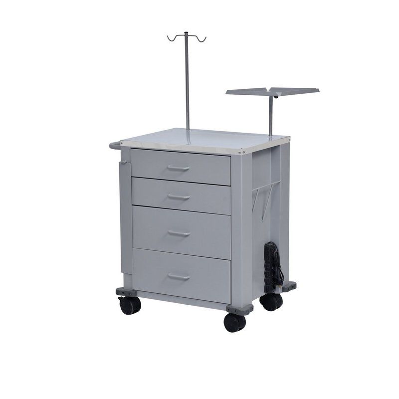 ACOMPANHA: Alça para locomoção, tábua de massagem cardiaca, divisória em acrilico para a 1ª gaveta, suporte de soro com regulagem de altura, suporte para prancheta, suporte de cilindro circular com velcro/cinta para a trava do cilindro, régua/ filtro de linha bivolt com cabo de 1,0 m contendo 3 saídas no minimo, para-choque bumpper em perfil estilo “cantoneira”.